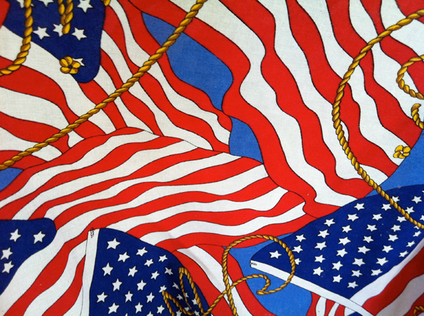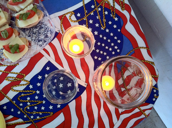 To the rescue: My grandmother’s chock-full basement! She lent me an antique wash tub to hold ice and drinks, as well as mason jars, fake flowers, a lone canvas flag, and outdoor candles: