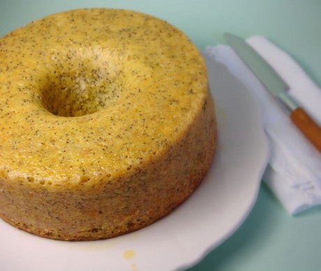 Passion fruit, almond and poppy seed cake from Technicolor Kitchen based on the Brazilian bolo de maracujรก.