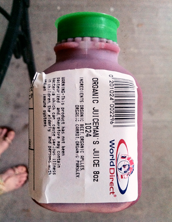 Yes, it’s called Juiceman’s Juice. The pros: It’s freshly squeezed at my local farmer’s market and it’s the color of acaรญ.ย The con: It’s made from beets, not acaรญ.
